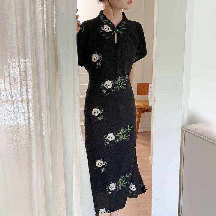 这个是一家专卖绵绸睡衣的店,但是有些款式还蛮特别的,比我之前看到的大花大红大绿要好看,这个链接里我最喜欢藏青玫瑰,但是我有一条裙子花色几乎一样,所以买了熊猫款,很舒服,既满足宽松舒适的要求,后面有系带,也可以收腰穿,我甚至觉得周末外穿都没问题,这个价格很不错了😌