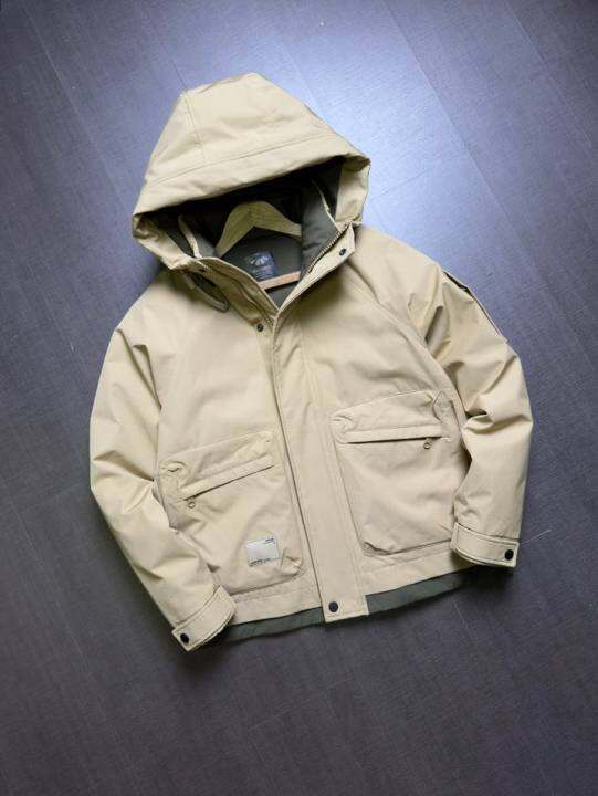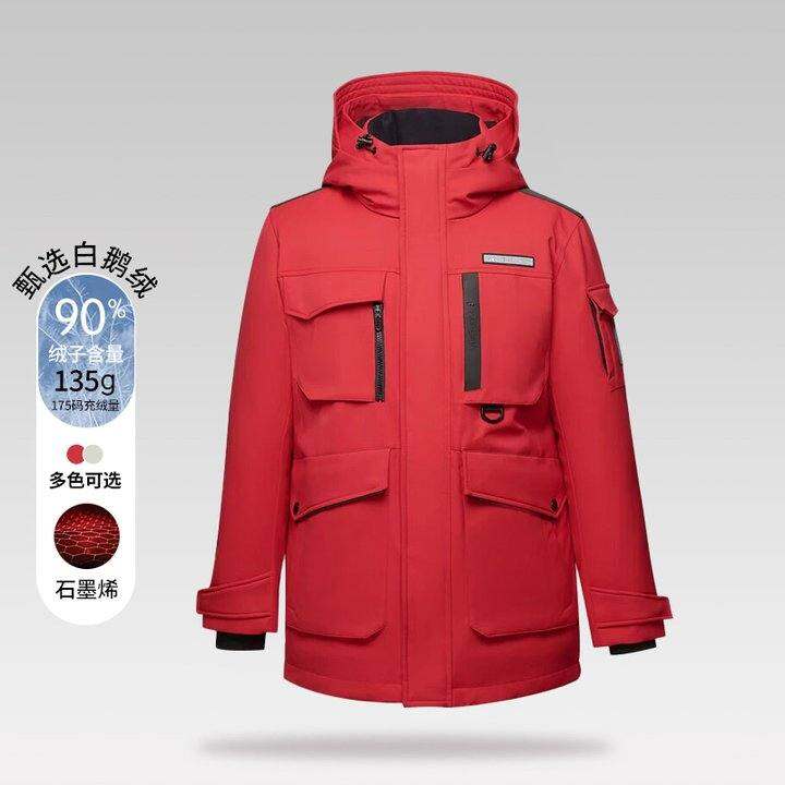 三防面料男士连帽鹅绒服无缝压胶充绒工装短款蓬松白鹅绒防寒外套