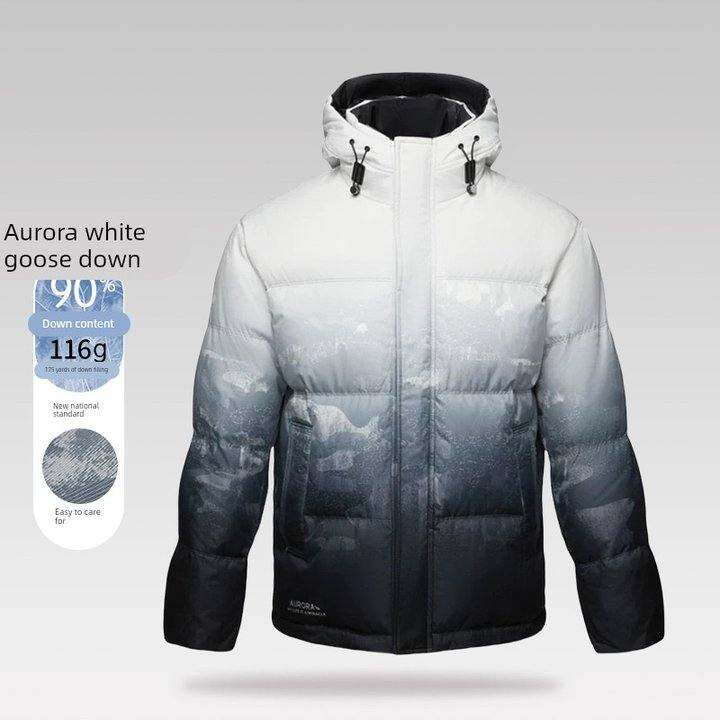 【H家】撤柜撤标!2025新款新款连帽渐变保暖休闲极光鹅绒羽绒服