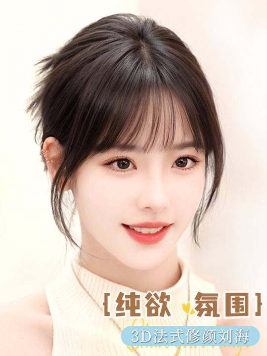 假发片女自然前额轻薄刘海头顶假发真发全真人发空气假刘海补发片