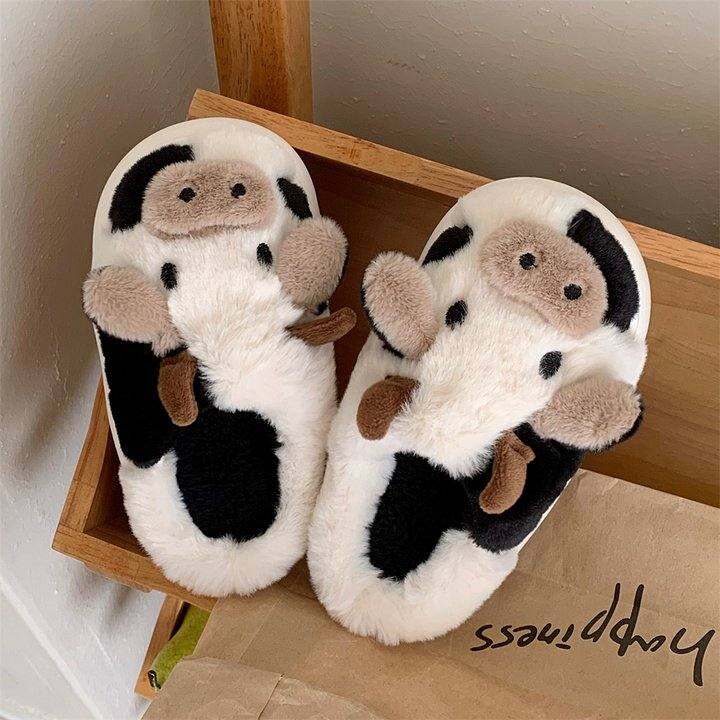 细细条 一家三口可爱卡通奶牛棉拖鞋男女冬季家居毛绒保暖棉鞋ins