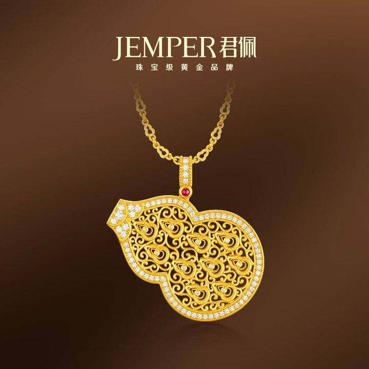 JEMPER/君佩FALO葫芦古法黄金双佩多福款红宝石高级吊坠调节新款
