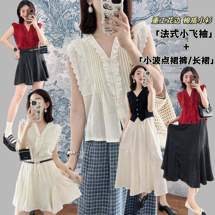 【纯白印记】法式花边小飞袖衬衫 防走光短裤里布 小波点裤裙