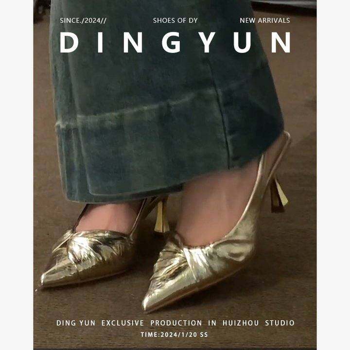 丁允金色高跟鞋礼服后空单鞋不累脚细跟尖头凉鞋气质港风女鞋性感