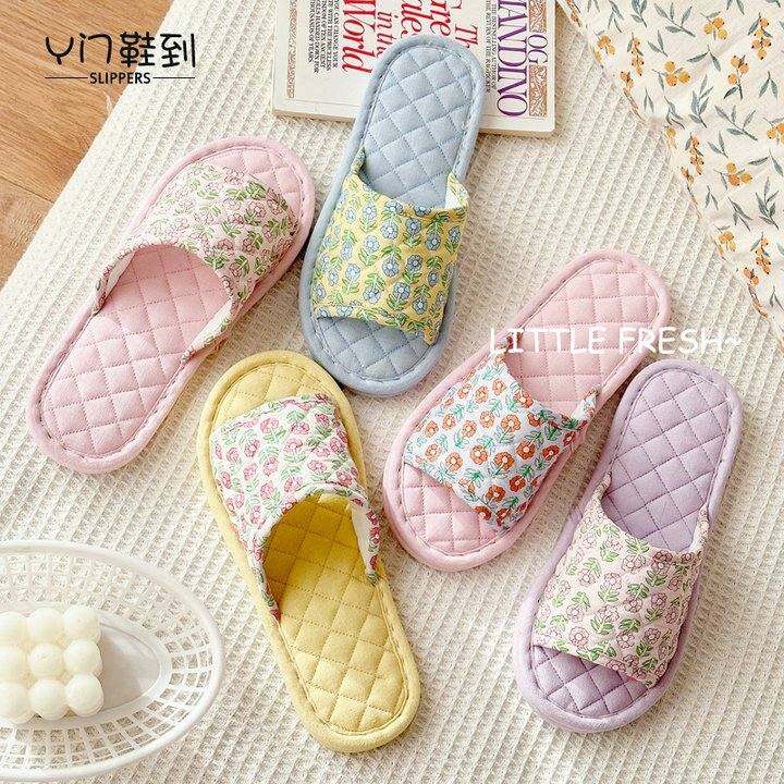 新款ins韩版清新碎花布艺棉麻少女拖鞋静音防滑软布底居家地板拖