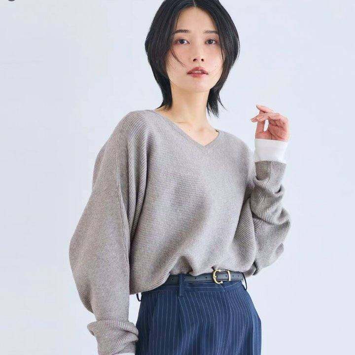 外贸日单秋冬女士毛衣 V领宽松显瘦落肩亲肤垂感百搭气质针织衫
