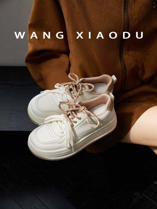 原创【王小毒】彩虹底色●5cm厚底板鞋女撞色鸳鸯鞋带增高小白鞋