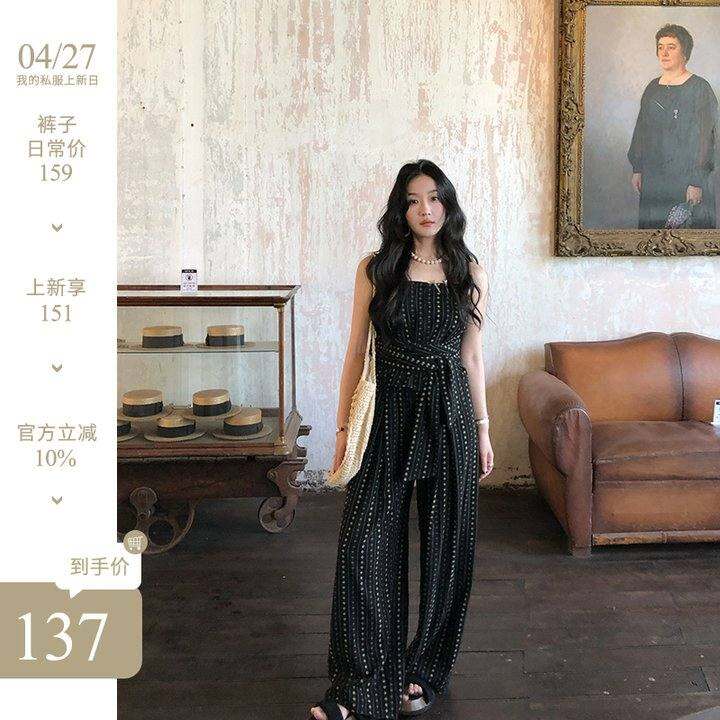 任小艺 4/27新品 棉麻混纺超爱的小众设计感绑带背心+拖地裤套装