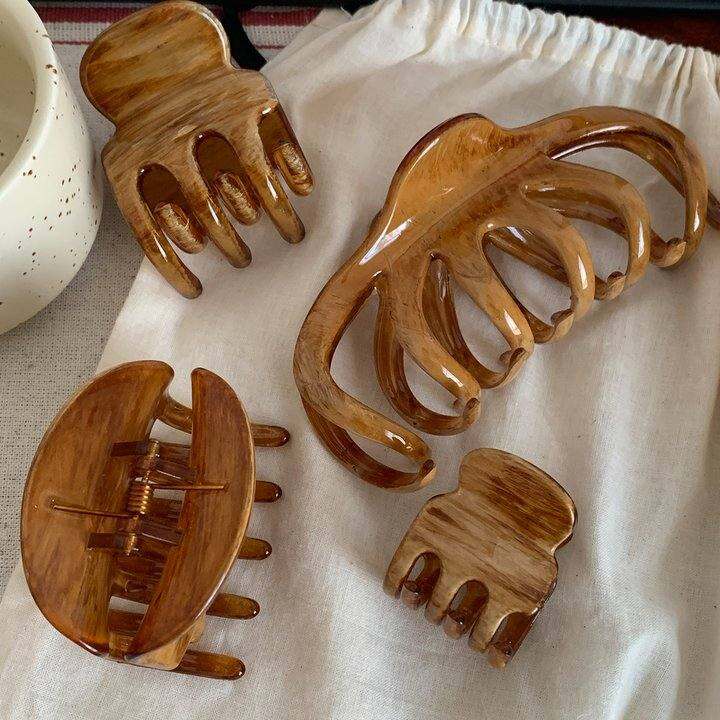 ins博主同款油画木纹抓夹复古法式发抓盘发夹子高级感鲨鱼夹发饰