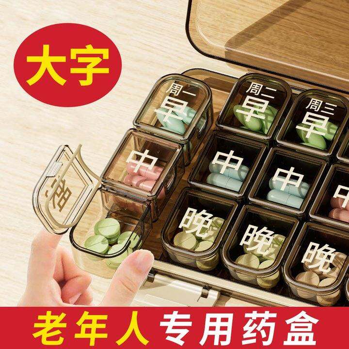 大字老年人药盒便携式分药器一周七天一日三餐吃药提醒药品分装盒