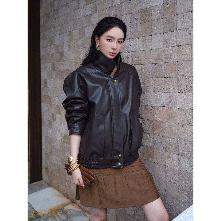 周淼【8.07 20:00新品】【摩登廓系】美式轻覆古机车翻领皮衣外套