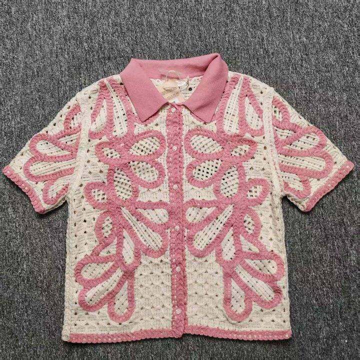 外贸尾货小清新polo领短袖针织开衫女春夏镂空上衣