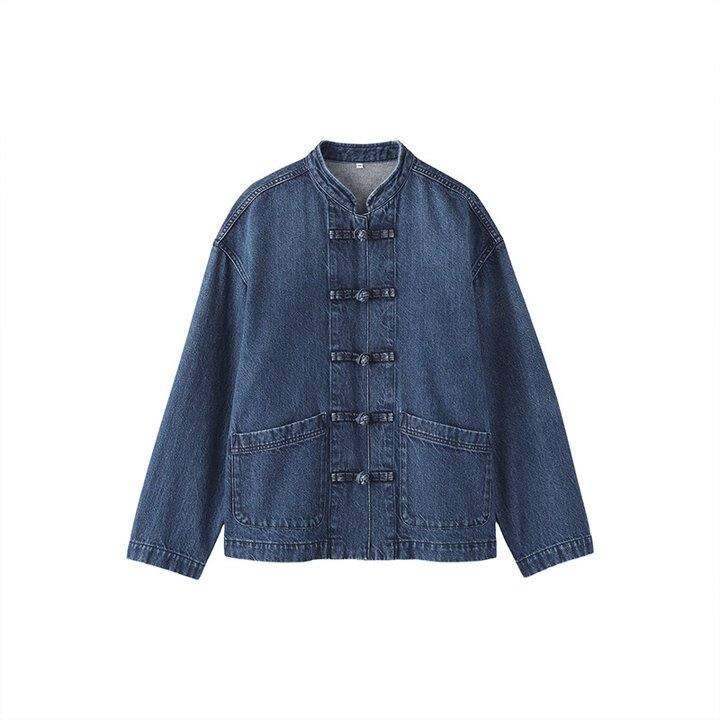 无印良品 MUJI 女式木棉混牛仔盘扣夹克女外套新中式女装春季