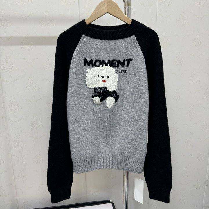 2024秋冬季设计感圆领百搭插肩袖拼色可爱卡通图案针织衫毛衣女