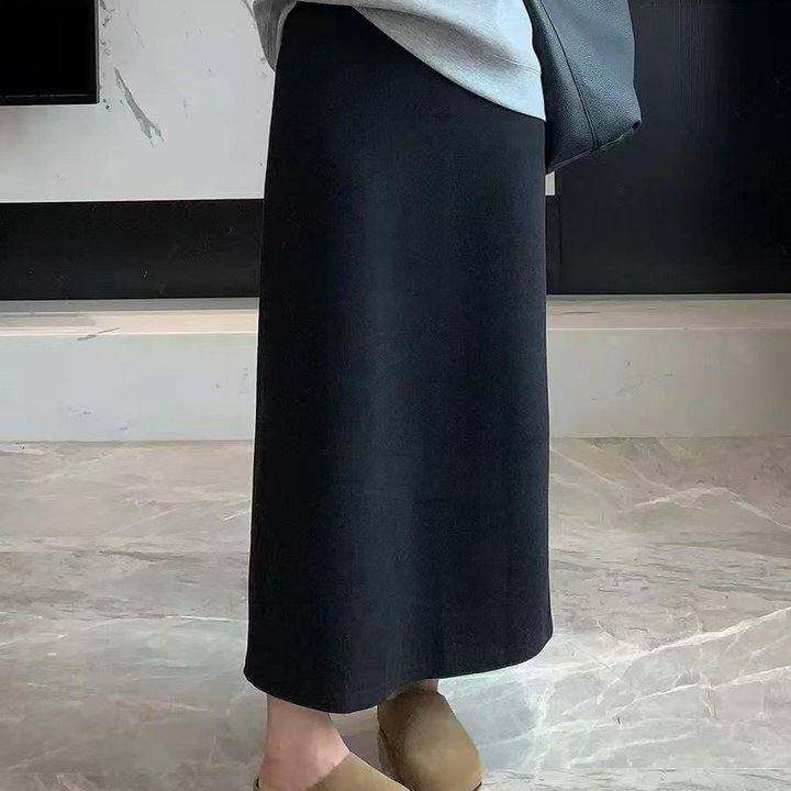 醋酸羊毛裙2024秋冬新韩国直筒显瘦高腰开叉中长款半身裙