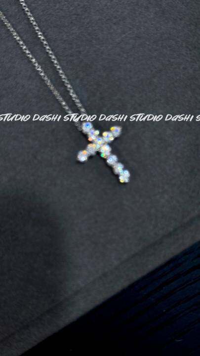 看清楚不含炼 巨闪顶A高碳钻手工镶嵌 S925纯银十字架吊坠