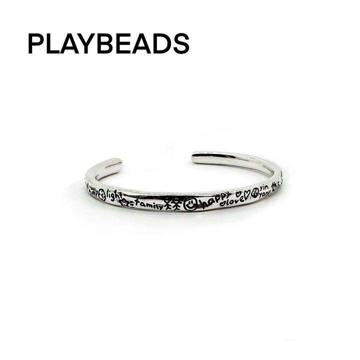 PLAYBEADS周年限定S925纯银做旧开口笑脸手镯一生中最重要的事情