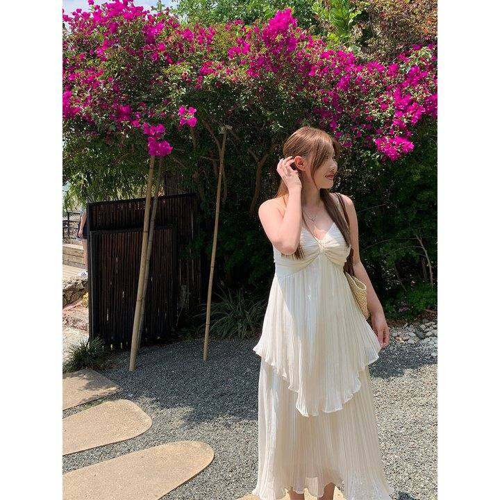 酒心微胖定制《普吉岛之旅》重工压皱设计感度假吊带仙女裙春夏