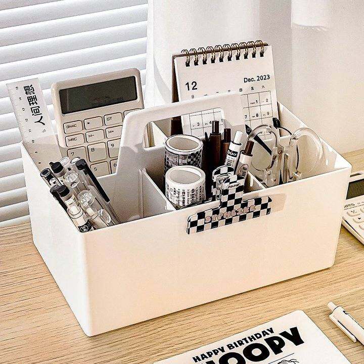 简约白色桌面收纳盒文具化妆品杂物分格储物盒办公室可叠加置物盒