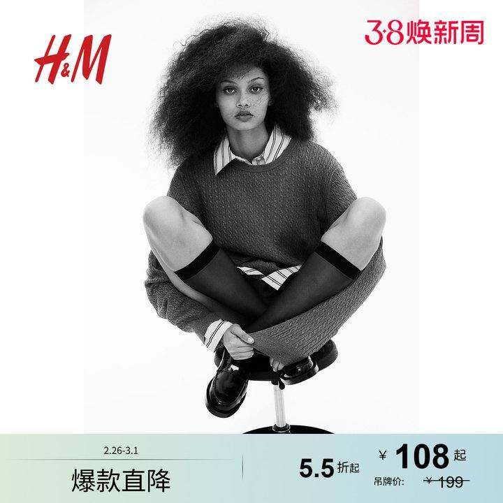 HM女装毛针织衫春季时尚休闲圆领绞花针织套衫1261068