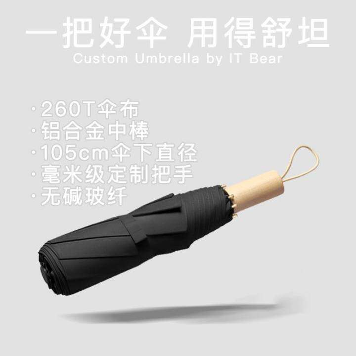 材质与设计 :260T 加密伞布 + 105cm 大伞面 + 铝合金伞架 + 无碱玻纤 + 定制化伞柄