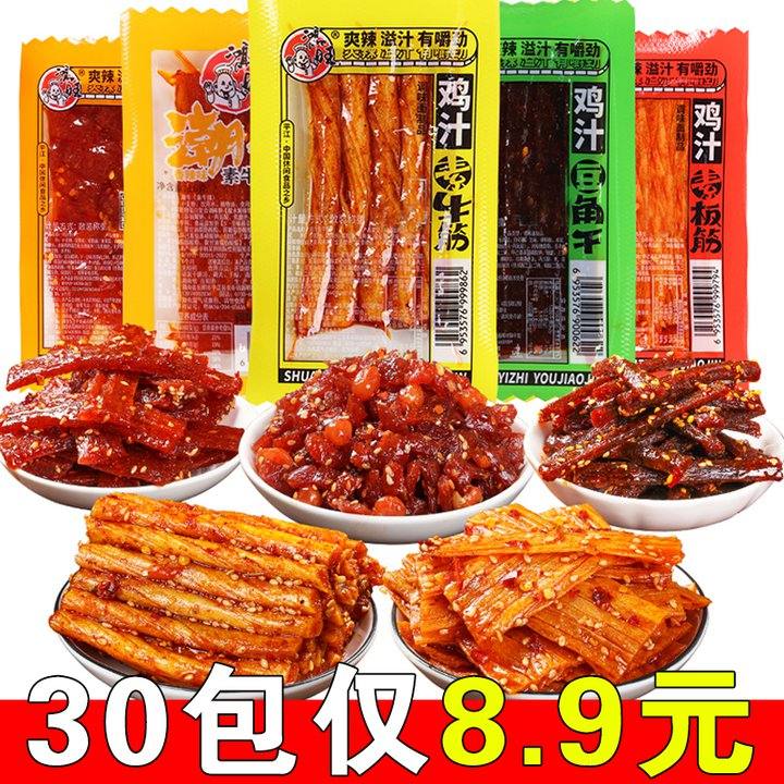 鸿旺鸡汁素牛筋素板筋豆角干麻辣条儿时怀旧解馋五毛休闲零食小吃