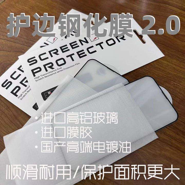 护边钢化膜 2.0 进口高铝基材/膜胶 电镀油 适用于 iPhone X/11/12/13/14/15 promax plus系列 更大保护面积