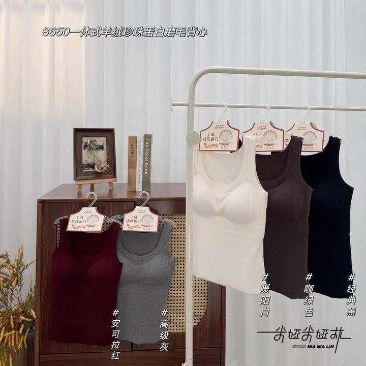 米娅林8650磨毛保暖背心珍珠胶原蛋白一体杯内衣宽肩带显瘦吊带秋
