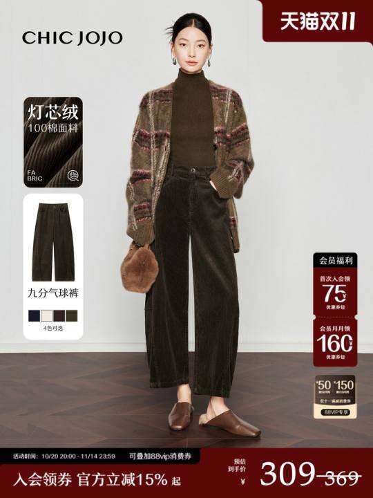 【雅痞序曲】CHICJOJO休闲裤女25冬新款绿色宽松覆古灯芯绒九分裤