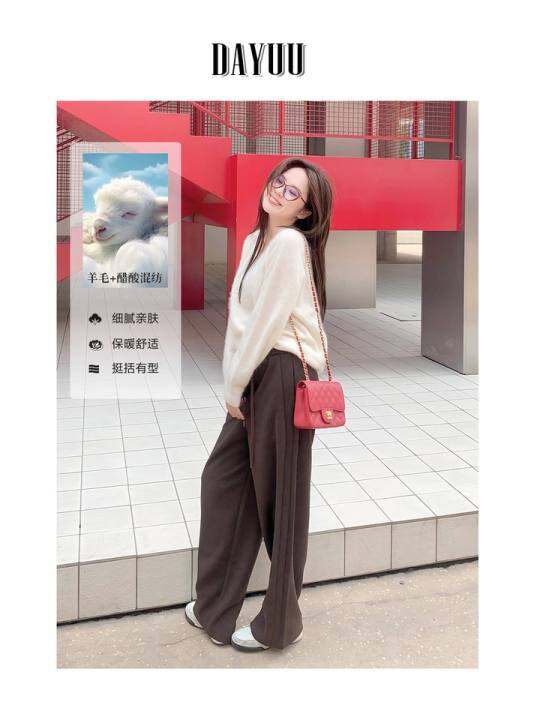 醋酸羊毛裤 高腰拼色松紧腰宽松加厚保暖阔腿香蕉裤女秋冬2025