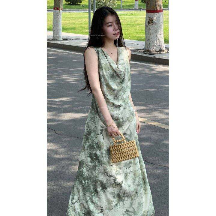 【梨花带雨】HL棉绸夏季垂折领无袖显瘦气质慵懒时尚宽松长版洋装