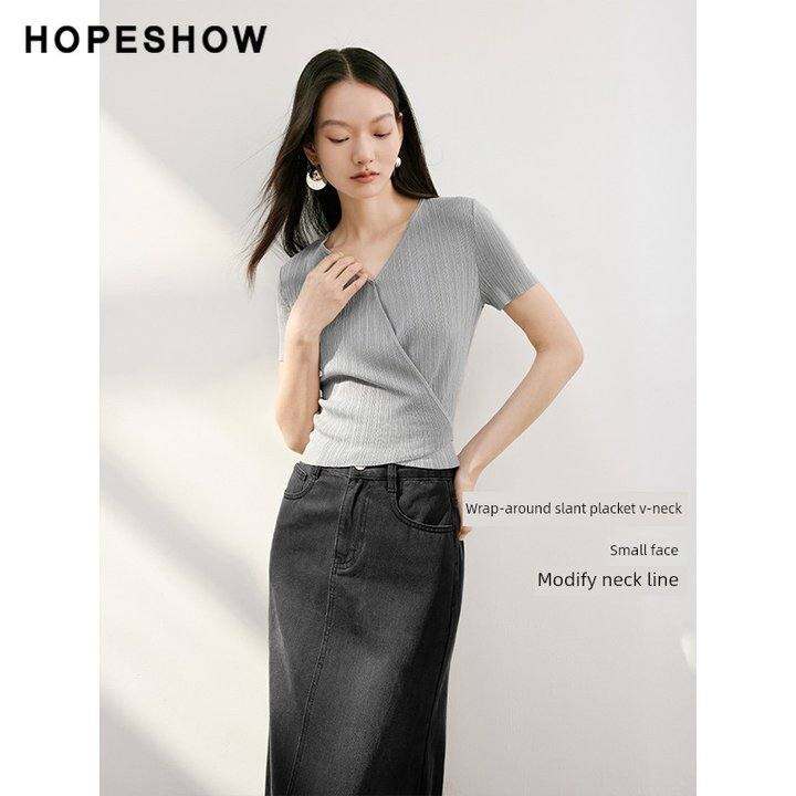 【日常价】红袖夏新款女装后镂空围裹式V领套头针织衫