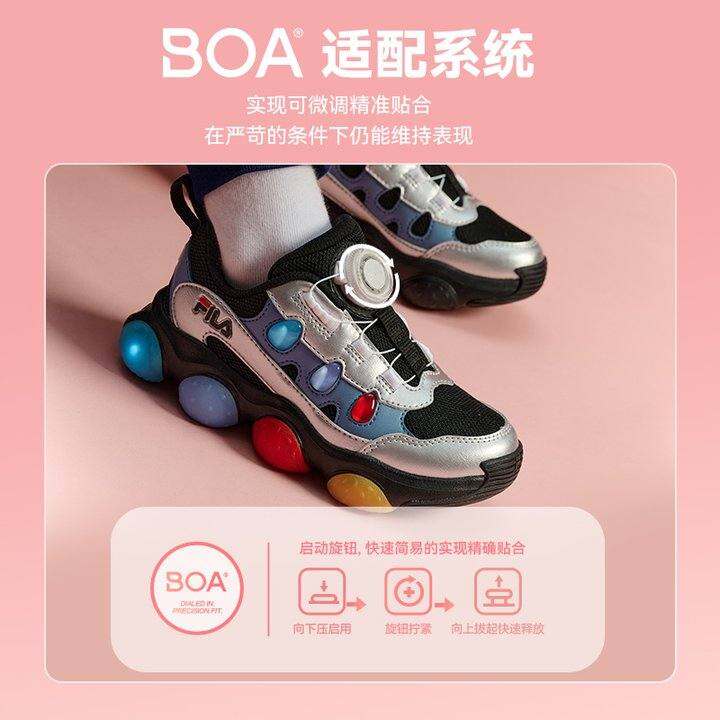 FILA斐乐儿童童鞋跑步鞋2025年秋季新款男女小童旋钮运动鞋化石鞋