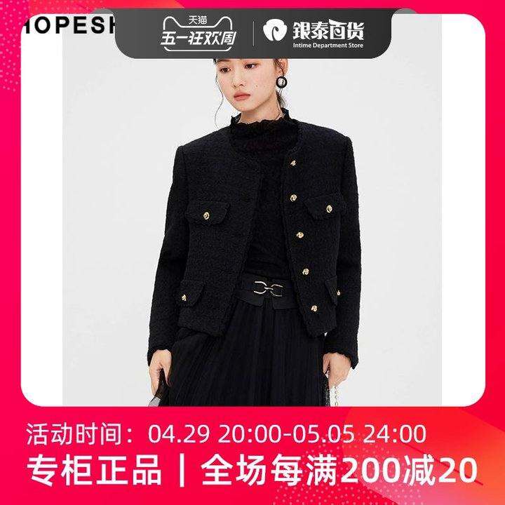 红袖商场同款HOPESHOW小香风短外套冬季女黑色肌理感上衣89123390405