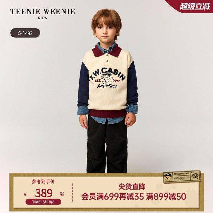 TeenieWeenie Kids小熊童装25新款秋冬男童学院风撞色POLO领毛衣