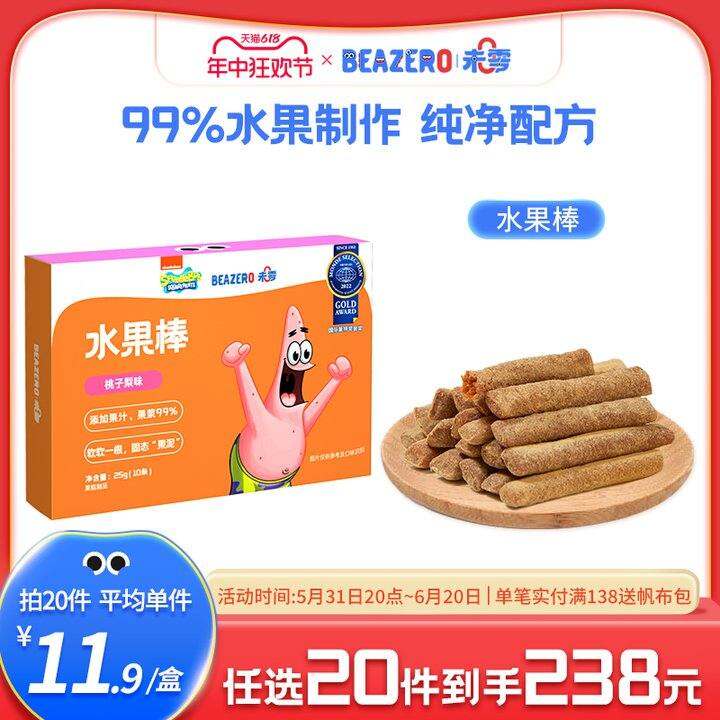 未零beazero海绵宝宝水果棒1盒儿童零食水果条添加果肉条独立包装