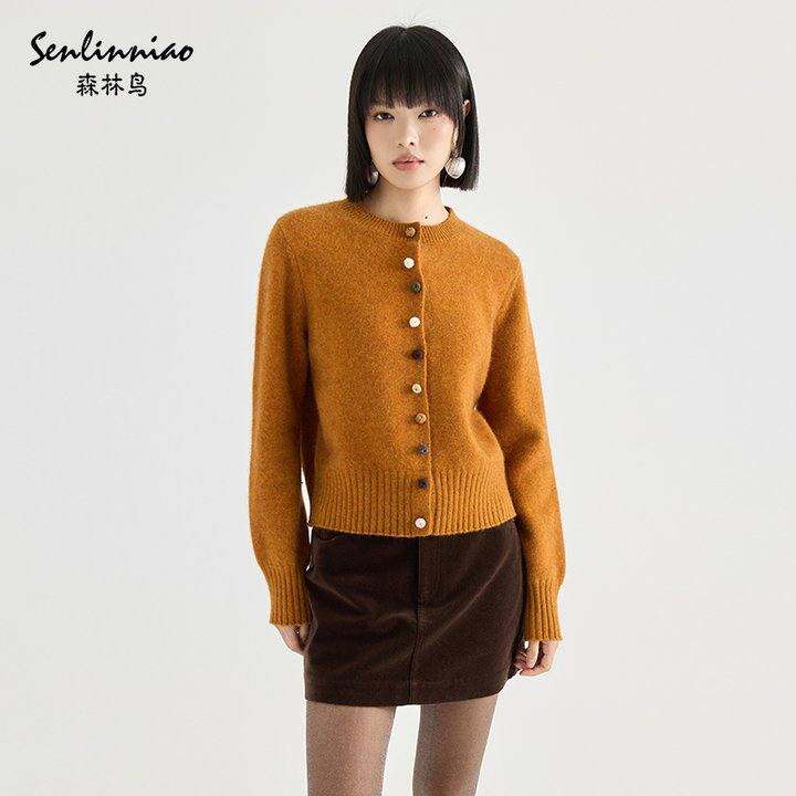 森林鸟商场同款圆领羊毛针织衫女25冬新款宽松显瘦开衫上衣
