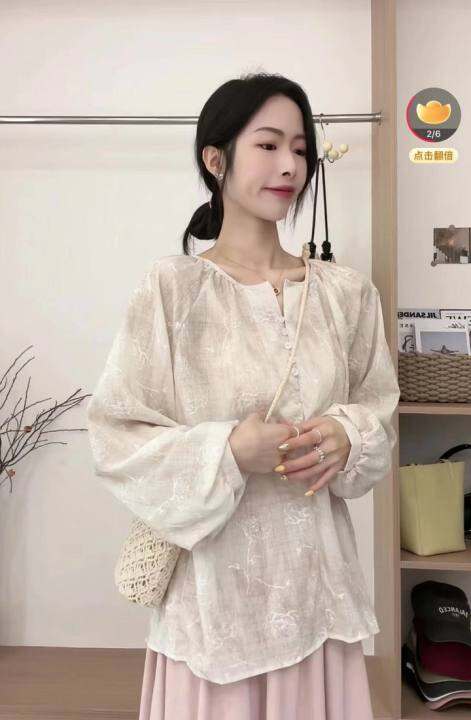 夏天很喜欢穿这种大的灯笼袖衬衫,里面再穿一件美背,轻薄凉快,还很显瘦。她家不退不换,不过这件开了七天无理由,直播间有详细讲解