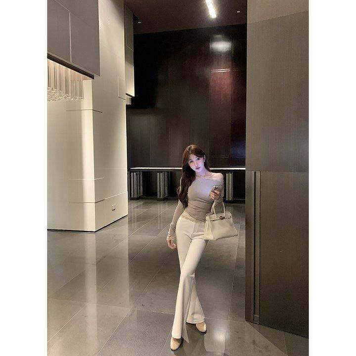 愉悦愉悦黑色高腰微喇叭休闲裤女春季气质显瘦高级感百搭长款裤子