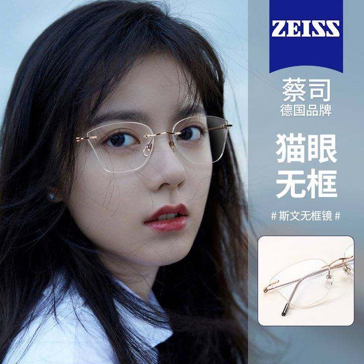 纯钛猫眼无边框近视眼镜女可配度数防蓝光抗辐射素颜斯文超轻大脸