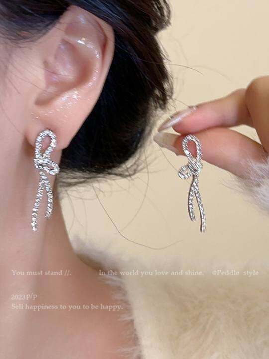 时尚锆石蝴蝶结耳钉轻奢高级感耳环小众设计气质耳饰女蚊香盘耳夹