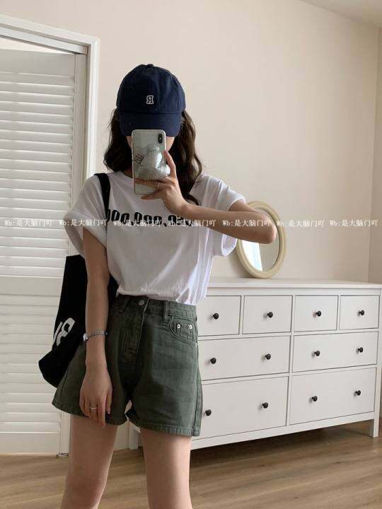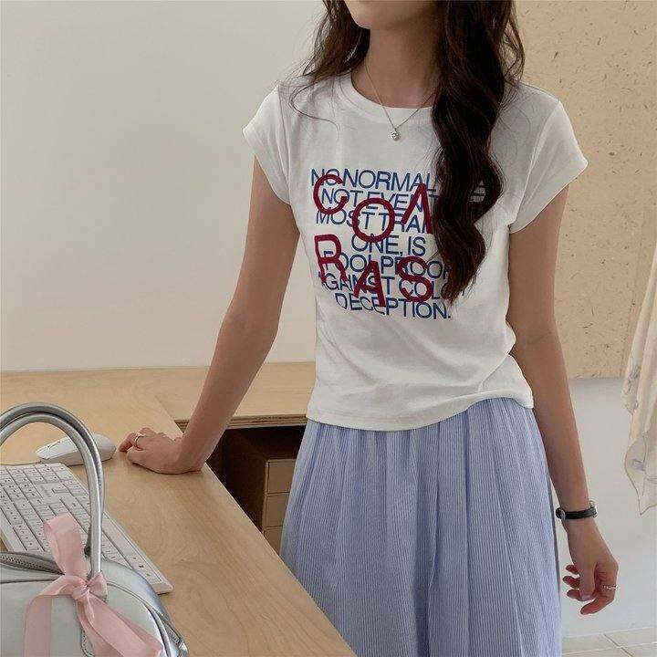 【美惠定制】纯色修身正肩短袖百搭简约设计感字母印花小个子T恤