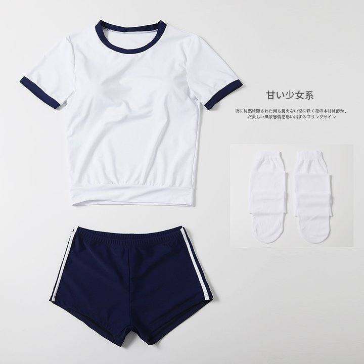 日系死库水游泳衣女分体学生保守遮肚显瘦防晒平角校园泡温泉泳装