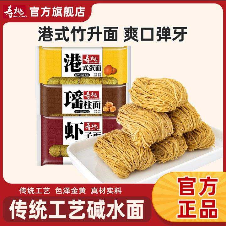 寿桃虾子面港式蛋面非油炸瑶柱面碱水面广东广式云吞面手工竹升面