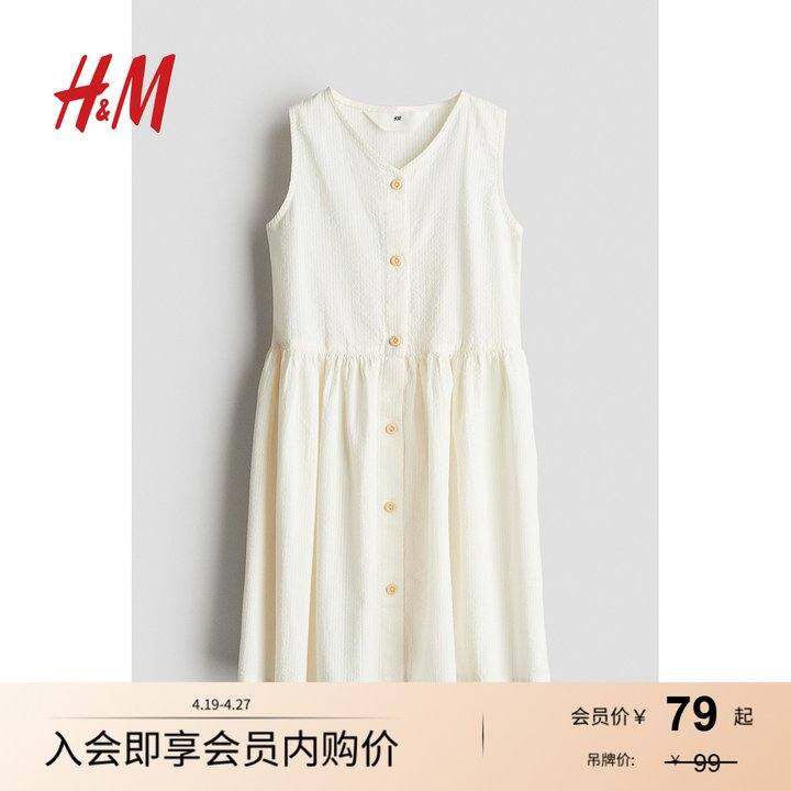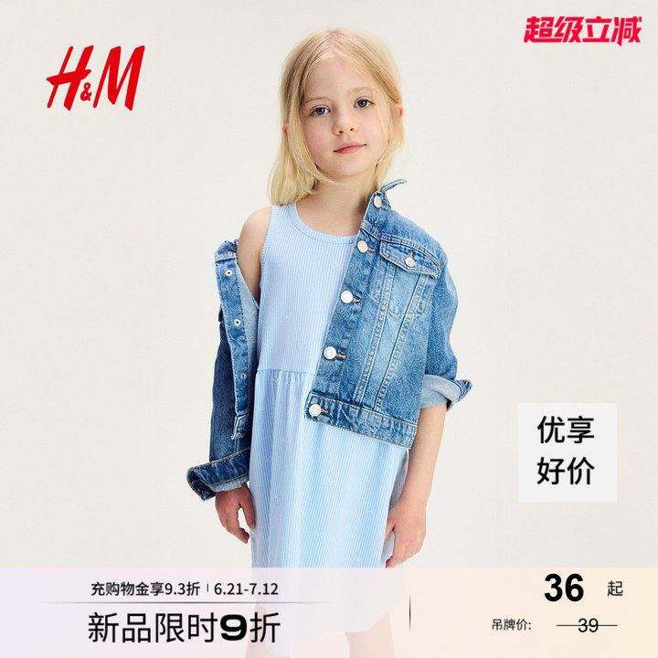 H&M童装女童裙子2025夏季新款洋气无袖可爱印花棉质连衣裙1157735