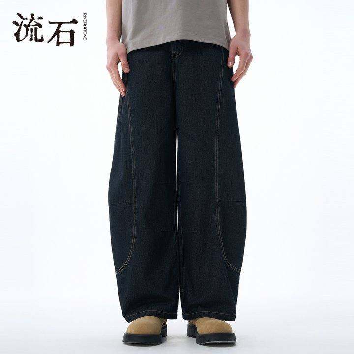 流石男装水洗拼接牛仔长裤2025年夏季新款男款经典百搭透气直筒裤