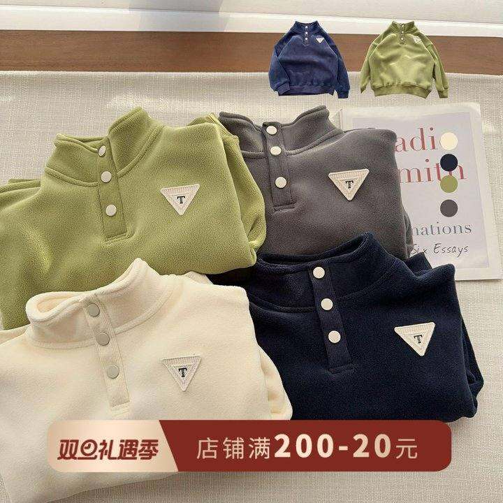 中大童双面奥利绒立领卫衣2024冬新款男女童保暖上衣简约厚实长袖