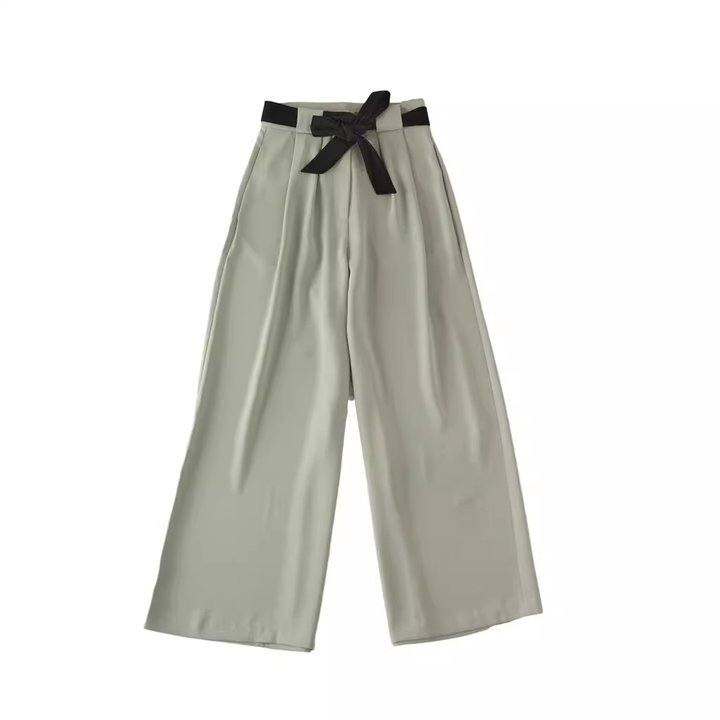 日单 高腰垂坠面料 撞色腰带 直筒宽裤 长裤42X