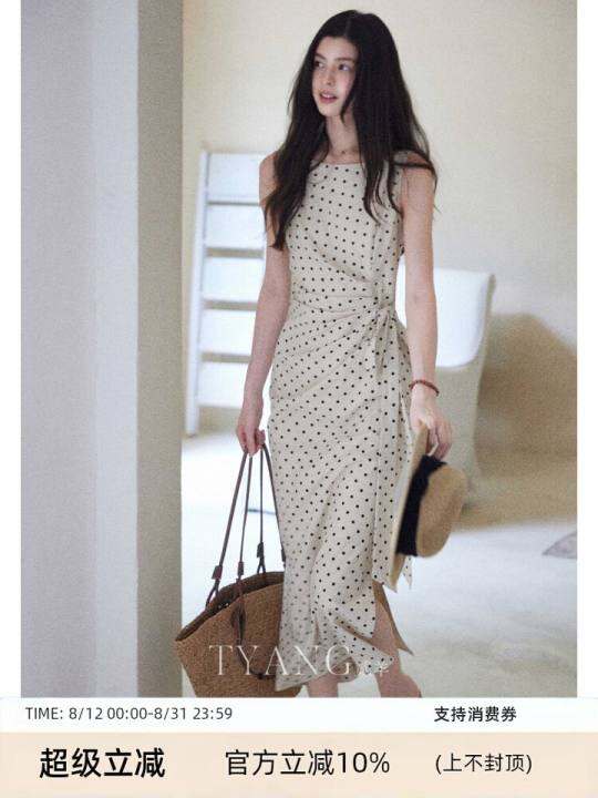 贰羊设计【松间月】高级感气质波点连衣裙女侧收腰亚麻棉法式长裙