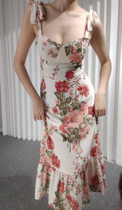 ◆春夏自制◆ref碎花天花板~法式复古蝴蝶结荷叶边吊带连衣裙女长